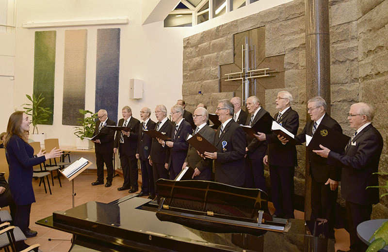 Jade Aulos johtaa Järvenpään Mieslaulajien seniorikuoro Ajattomia. Kuhmoisten mieskuoro esiintyi konsertissa Hannele Erolan johdolla. Kumpikin kuoro esitti erikseen oman ohjelmistonsa, ja molempien esitysten päätteeksi mieskuorot yhdistivät äänensä viimeisessä kappaleessa. Ilta päättyi komeaan yhteisesitykseen Suomen laulusta.