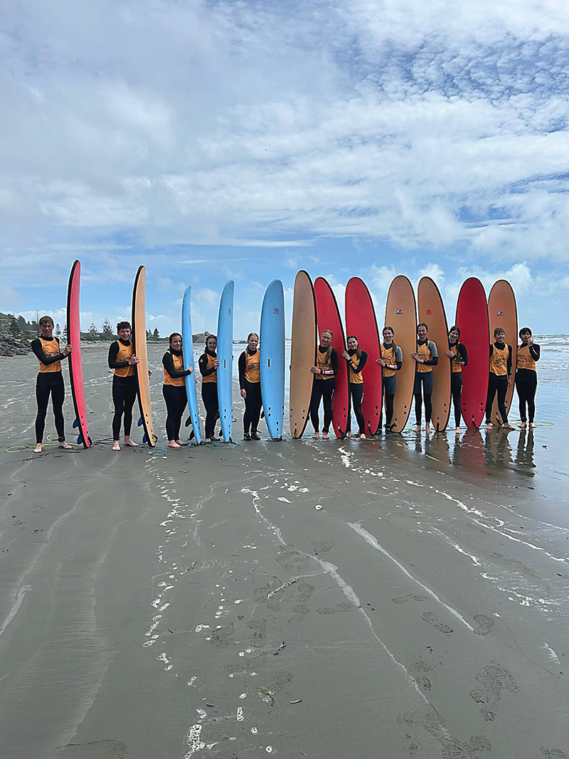 Kevään aikana osallistuimme surffauskurssille yhdessä muiden vaihto-oppilaiden kanssa. Välillä satoi lunta, välillä aurinko paistoi paahteisesti pilvettömältä taivaalta. Erityisesti mieleen jäi hetki, kun ensimmäistä kertaa onnistuin seisomaan laudalla. Ehdin jo iloita, että nyt tämä onnistuu, kunnes sekunnin kuluttua lensin vatsalleni takaisin veteen. Vaikka mestareita meistä ei surffauksessa tullutkaan, jokainen kerta oli täynnä naurua ja uusia kokemuksia.