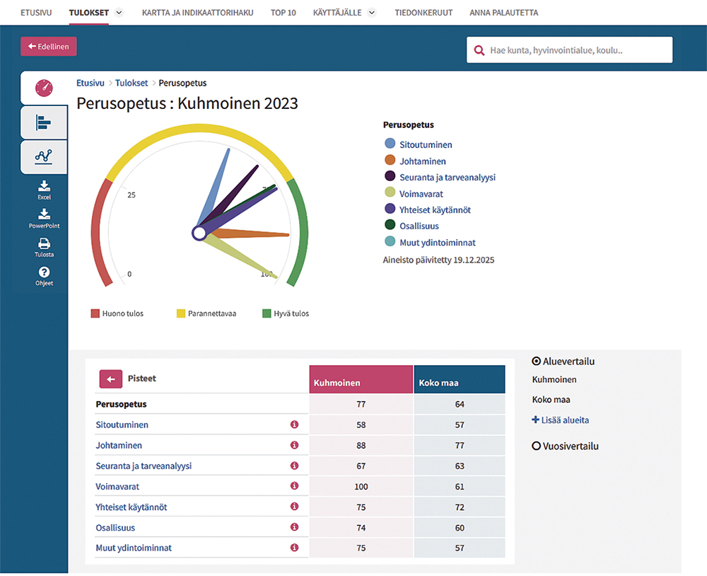 Terho myönsi, että työkalu ei paljasta syitä muutosten taustalla ja pahoitteli, että vuoden 2024 raporttia päästiin käsittelemään vasta nyt. Vuoden 2025 raportti on viittä vailla valmis ja lienee käsiteltävissä toukokuun valtuuston kokouksessa.
