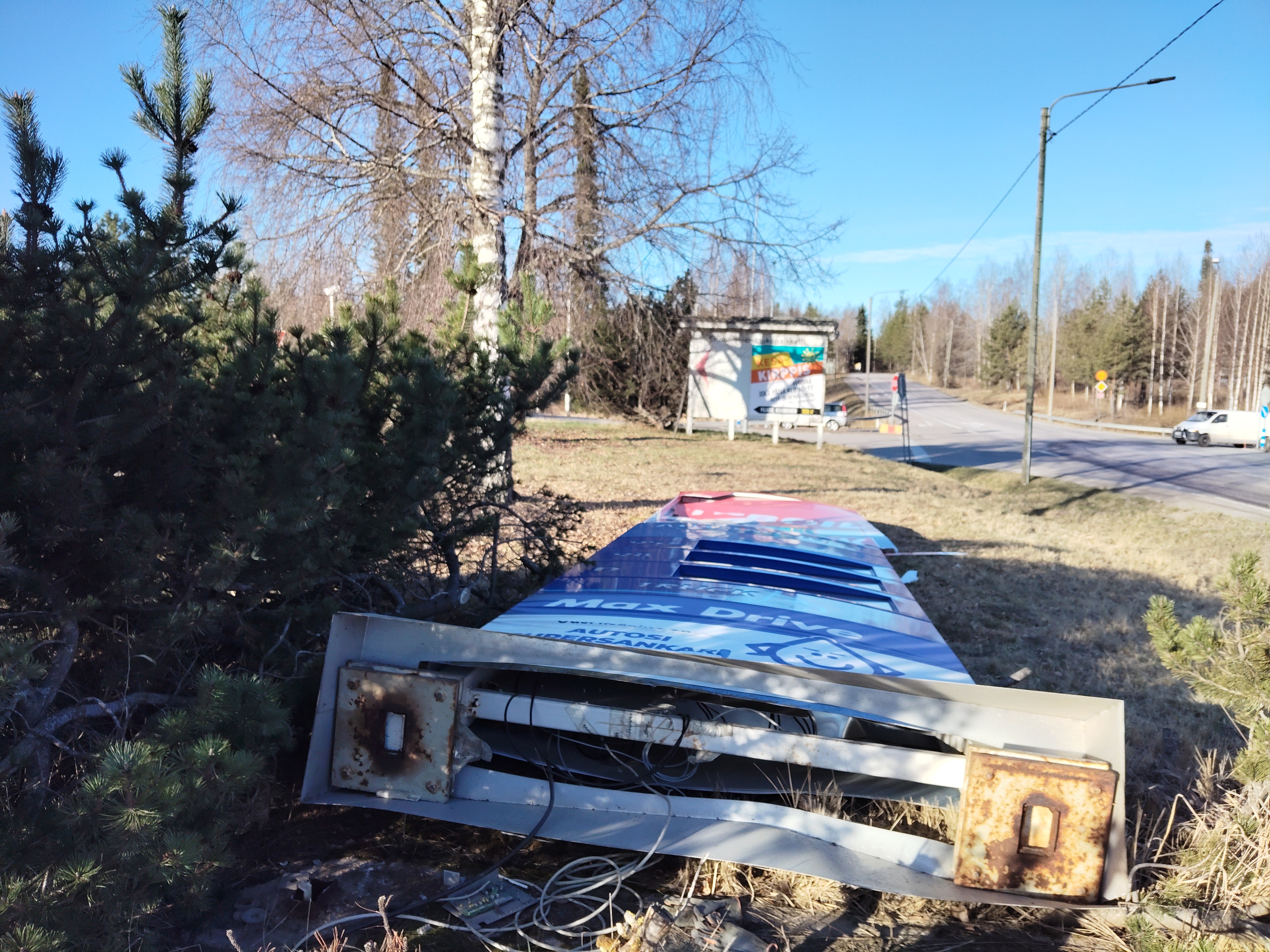 IMG_20260423_074403 23.4.2026 ← Return to IMG_20260423_074403 ‹ › Käytöstä poistetun Teboilin kylmäaseman hintataulu kaatui keskiviikkoiltana oletettavasti kovan tuulen voimasta.