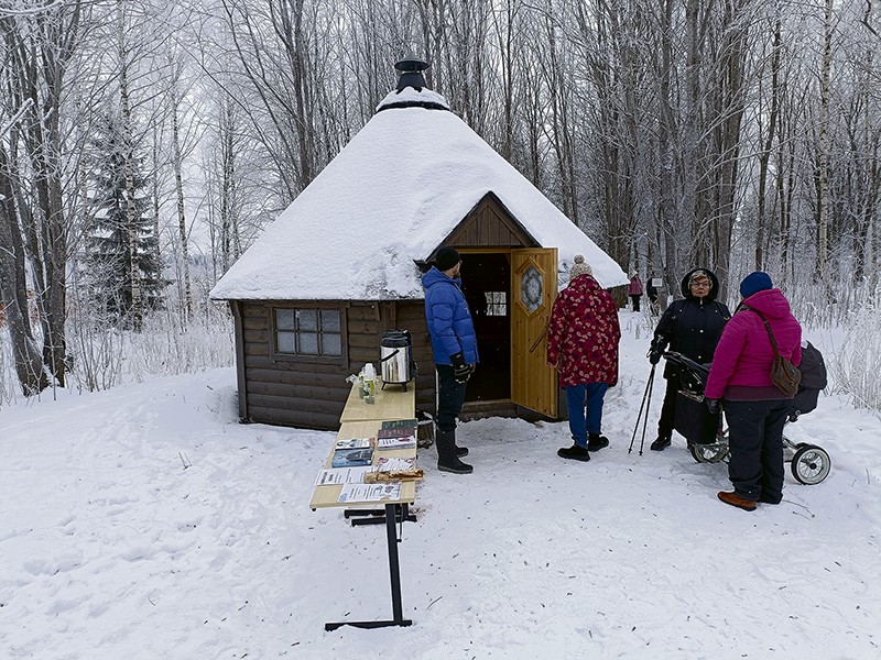 RUNEBERGIN PÄIVÄÄ juhlistettiin torstaina 5. helmikuuta K-Market Kipparin takana kylän yhteisellä lähikodalla. Kävijöitä riitti, ja kuuma juoma maistui grillimakkaran kyytipoikana. Jälkiruoaksi oli totta kai runebergintorttuja. Kunnan ja Kuhmoisten kappeliseurakunnan järjestämä tilaisuus sai kirkonkylän asukkaat tapaamaan toisiaan ja liikkumaan lähiluonnossa.