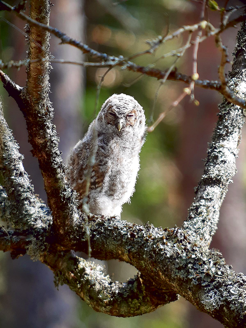 Lehtopöllön poikanen lähdössä maailmalle. Kuva: Pekka Nuuttila