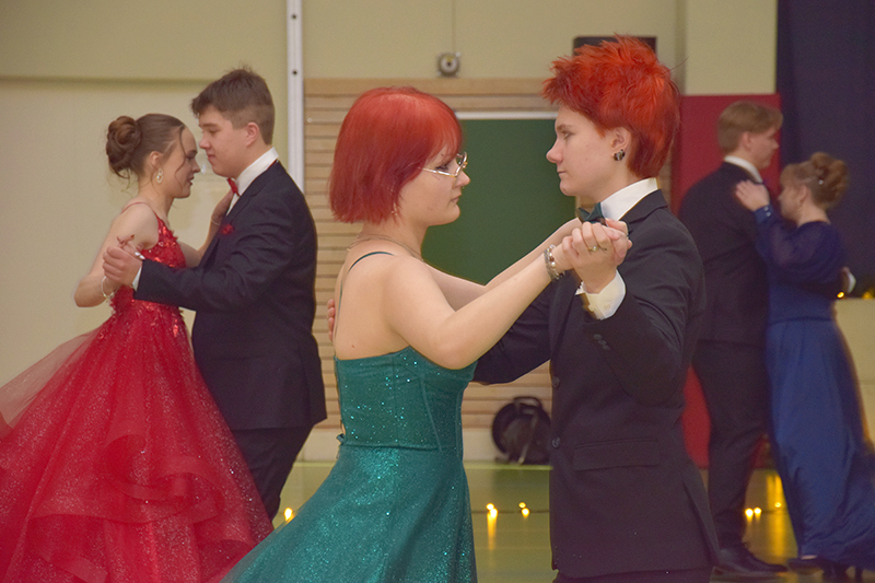”Wanhuus ei ole koskaan näyttänyt näin hyvältä”, totesivat vuoden 2026 wanhojen tansseja juontaneet Hilma Järvinen ja Elias Helin avatessaan wanhojen tanssiurakan perjantaiaamuna yhtenäiskoululla.